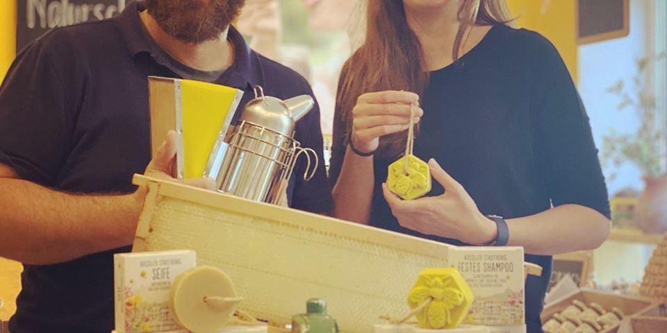Unsere neue Kosmetikreihe aus dem Bienenvolk ist heute erfolgreich in den Handel gegangen. Zusammen mit unserer Mitarbeiterin Julia, haben wir eine ganze Serie entwickelt. Angefangen mit Naturseife aus hochwertigen Ölen, Honig und Bienenwachs, über festes Shampoo zum täglichen Haarewaschen und Duschen, sanft pflegendes Lippenwachs, feste Handbutter… alles selbstverständlich zertifiziert und vom unabhängigen Labor überprüft. Zusätzlich haben wir Seife und Shampoo mit einer Kordel ausgestattet. So könnt Ihr die guten Brocken nach Gebrauch einfach aufhängen und sie sumpfen nicht in einer Seifenschale vor sich hin. Ausgangslage für die Produktentwicklung war: Wir wollten alles weglassen, was die Industrie uns unterjubelt: Kein Mikroplastik, keine Parabene, keine Silikone, kein Palmöl, keine künstlichen Farbstoffe und Konservierungsmittel. Just nature! Den Anfang haben wir heute beim REWE im DEZ gemacht. Und die Mitarbeiter haben es gleich wundervoll dekoriert und präsentiert. Bei dem Festen Shampoo darf jedoch ein Warnhinweis nicht fehlen: Das täglich Duschen könnte ab sofort nun doppelt so lange dauern. Alle Produkte in Kürze mit ausführlichen Produktbeschreibungen und Liste der Inhaltsstoffe in unserem Onlineshop.